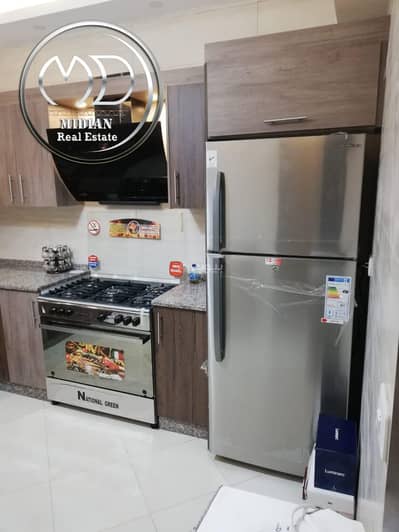 صالون - معيشة - مطبخ كامل الاجهزة الكهربائية - 2 نوم 1 ماستر - 2 حمام - ترس 100م - مدخل مستقل .
